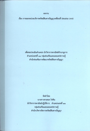 ผลงานวิชาการ เรื่อง การออกหน่วยบริการทรัพย์สินทางปัญญาเคลื่อนที่ (Mobile Unit)