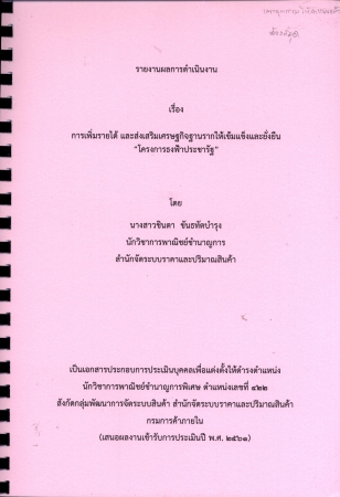 04826 ผลงานวิชาการ เรื่อง การเพิ่มรายได้ และส่งเสริมเศรษฐกิจฐานรากให้เข้มแข็งและยั่งยืน “โครงการธงฟ้าประชารัฐ” อยู่บนชั้นวางหนังสือ เข้าสู่ระบบ