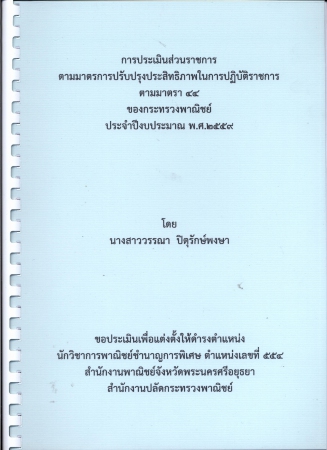 | 04800 | ผลงานวิชาการ เรื่อง การประเมินส่วนราชการตามมาตรการปรับปรุงประสิทธิภาพในการปฏิบัติราชการ ตามมาตรา 44 ของกระทรวงพาณิชย์ ประจำปีงบประมาณ พ.ศ.2559 | อยู่บนชั้นวางหนังสือ | เข้าสู่ระบบ |