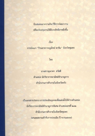 ผลงานวิชาการ เรื่อง การพัฒนา "ร้านอาหารหนูณิชย์ พาชิม" จังหวัดชุมพร