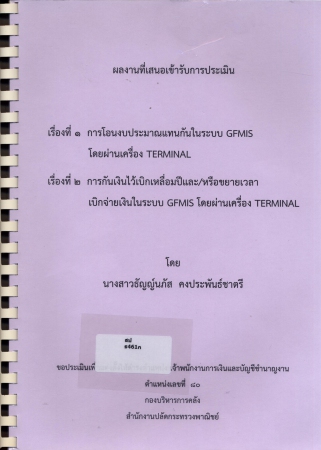 | 03735 | ผลงานวิชาการ เรื่องที่ 1 การโอนงบประมาณแทนกันในระบบ GFMIS โดยผ่านเครื่อง TERMINAL, เรื่องที่ 2 การกันเงินไว้เบิกเหลื่อมปีและ/หรือขยายเวลาเบิกจ่ายเงินในระบบ GFMIS โดยผ่านเครื่อง TERMINAL | อยู่บนชั้นวางหนังสือ | เข้าสู่ระบบ |