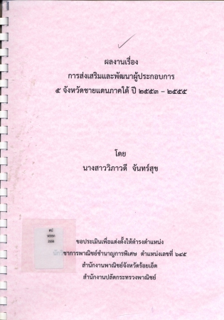 ผลงานวิชาการ เรื่อง การส่งเสริมและพัฒนาผู้ประกอบการ 5 จังหวัดชายแดนภาคใต้ ปี 2553 - 2554