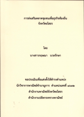 ผลงานวิชาการ เรื่อง การส่งเสริมตลาดชุมชนเพื่อธุรกิจท้องถิ่น จังหวัดยโสธร