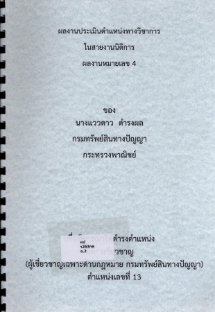 | 04154 | ผลงานประเมินตำแหน่งทางวิชาการในสายงานนิติการ ผลงานหมายเลข 4 เรื่อง การตอบข้อหารือเกี่ยวกับกฎหมายว่าด้วยเครื่องหมายการค้า | อยู่บนชั้นวางหนังสือ | เข้าสู่ระบบ |