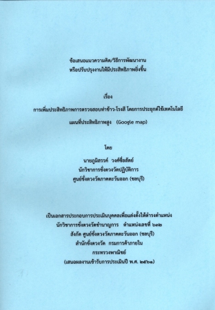 ผลงานวิชาการ เรื่อง การเพิ่มประสิทธิภาพการตรวจสอบท่าข้าว-โรงสี โดยการประยุกต์ใช้เทคโนโลยี แผนที่ประสิทธิภาพสูง (Google map)