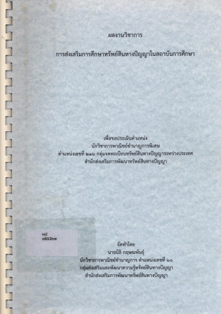 ผลงานวิชาการ เรื่อง การส่งเสริมทรัพย์สินทางปัญญาในสถาบันการศึกษา