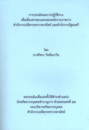 ผลงานวิชาการ เรื่อง การประเมินผลการปฏิบัติงาน เพื่อเลื่อนค่าตอบแทนของพนักงานราชการ สำนักงานปลัดกระทรวงพาณิชย์ และสำนักงานรัฐมนตรี