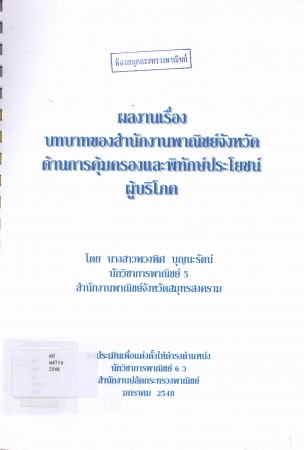ผลงานวิชาการ เรื่อง บทบาทของสำนักงานพาณิชย์จังหวัดด้านการคุ้มครองและพิทักษ์ประโยชน์ผู้บริโภค