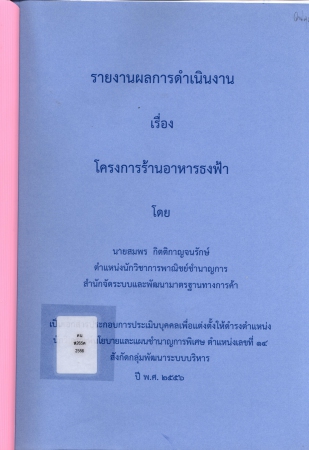 ผลงานวิชาการ เรื่อง โครงการร้านอาหารธงฟ้า