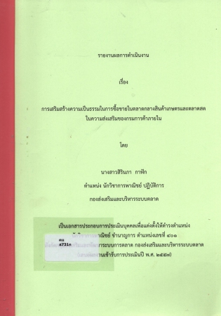 ผลงานวิชาการ เรื่อง การเสริมสร้างความเป็นธรรมในการซื้อขายในการตลาดกลางสินค้าเกษตรและตลาด ในความส่งเสริมของกรมการค้าภายใน