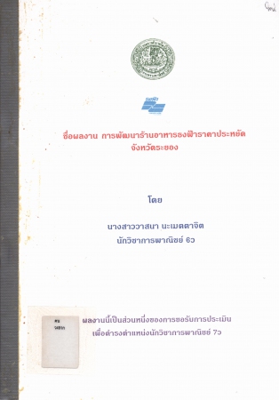 ผลงานวิชาการ เรื่อง การพัฒนาร้านอาหารธงฟ้าราคาประหยัดจังหวัดระยอง