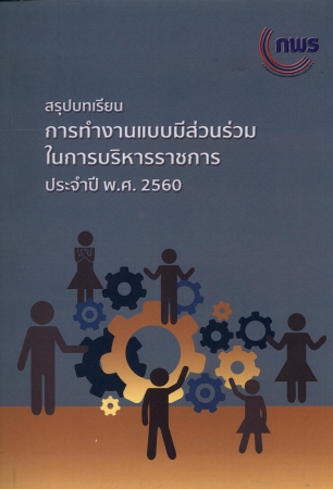 PB001110 สรุปบทเรียนการทำงานแบบมีส่วนร่วมในการบริหารราชการ ประจำปี พ.ศ.2560 อยู่บนชั้นวางหนังสือ เข้าสู่ระบบ