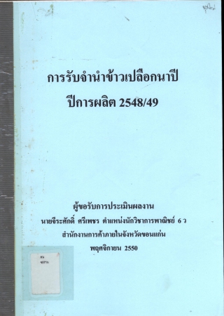 ผลงานวิชาการ เรื่อง การรับจำนำข้าวเปลือกนาปี ปีการผลิต 2548/49