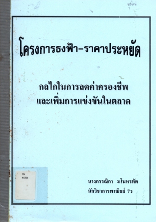 000000001906 ผลงานวิชาการ เรื่อง โครงการธงฟ้า-ราคาประหยัด กลไกในการลดค่าครองชีพและเพิ่มการแข่งขันในตลาด อยู่บนชั้นวางหนังสือ เข้าสู่ระบบ
