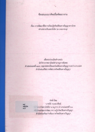 | 01515 | ผลงานวิชาการ เรื่อง การพัฒนาสื่อการเรียนรู้ทรัพย์สินทางปํญญาทางไกล ผ่านระบบอินเตอร์เน็ต (e-Learning) | อยู่บนชั้นวางหนังสือ | เข้าสู่ระบบ |