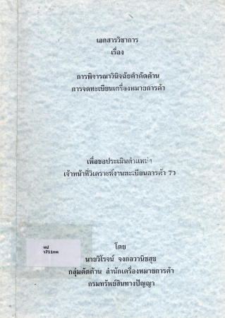 ผลงานวิชาการ เรื่อง การพิจารณาวินิจฉัยคำคัดค้าน การจดทะเบียนเครื่องหมายการค้า