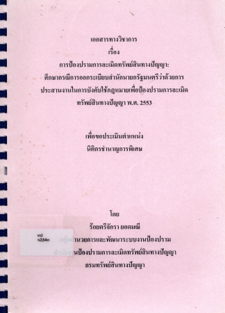 | 00921 | ผลงานวิชาการ เรื่อง การป้องปรามการละเมิดทรัพย์สินทางปัญญา : ศึกษากรณีการออกระเบียบสำนักนายกรัฐมนตรีว่าด้วยการประสานงานในการบังคับใช้กฎหมายเพื่อป้องปรามการละเมิดทรัพย์สินทางปัญญา พ.ศ.2553 | อยู่บนชั้นวางหนังสือ | เข้าสู่ระบบ |