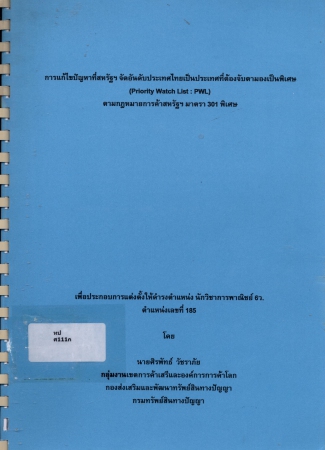 ผลงานวิชาการ เรื่อง การแก้ไขปัญหาที่สหรัฐฯ จัดอันดับประเทศไทยเป็นประเทศที่ต้องจับตามองเป็นพิเศษ (Priority Watch List : PWL) ตามกฎหมายการค้าสหรัฐฯ มาตรา 301 พิเศษ