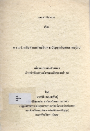 01192 ผลงานวิชาการ เรื่อง ความร่วมมือด้านทรัพย์สินทางปัญญากับสหภาพยุโรป อยู่บนชั้นวางหนังสือ เข้าสู่ระบบ
