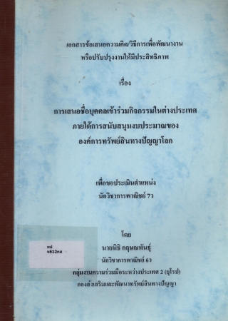 ผลงานวิชาการ เรื่อง การเสนอชื่อบุคคลเข้าร่วมกิจกรรมในต่างประเทศ ภายใต้การสนับสนุนงบประมาณขององค์การทรัพย์สินทางปัญญาโลก