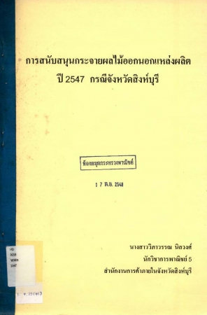 ผลงานวิชาการ เรื่อง การสนับสนุนกระจายผลไม้ออกนอกแหล่งผลิต ปี 2547 กรณีจังหวัดสิงห์บุรี