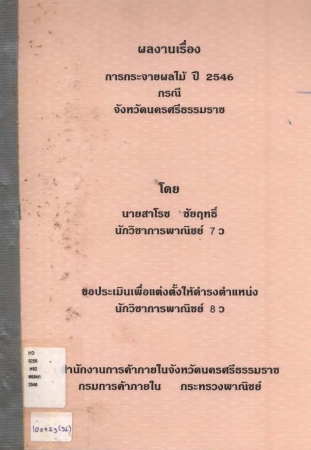 ผลงานวิชาการ เรื่อง การกระจายผลไม้ ปี 2546 กรณีจังหวัดนครศรีธรรมราช