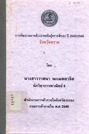 ผลงานวิชาการ เรื่อง การพัฒนาตลาดสับปะรดพันธ์ุตราดสีทอง ปี 2545/46 จังหวัดตราด