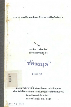 ผลงานวิชาการ เรื่อง การกระจายผลไม้ภาคตะวันออก ปี 2546 กรณีจังหวัดเชียงราย