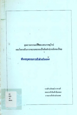 ผลงานวิชาการ เรื่อง อุตสาหกรรมแป้งของสหภาพยุโรปและโอกาสในการขยายตลาดแป้งมันสำปะหลังของไทย
