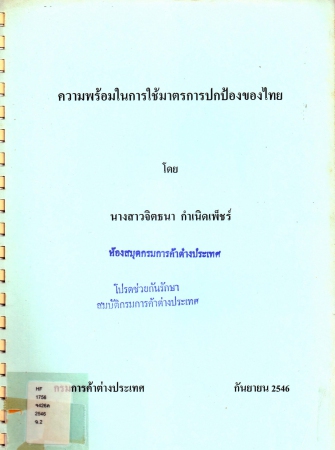 000000007630 ผลงานวิชาการ เรื่อง ความพร้อมในการใช้มาตรการปกป้องของไทย ถูกยืม เข้าสู่ระบบ