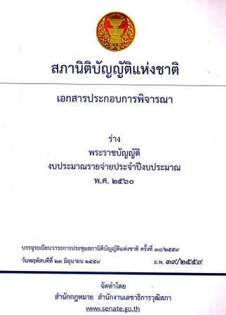 สภานิติบัญญัติแห่งชาติ เอกสารประกอบการพิจารณาร่างพระราชบัญญัติงบประมาณรายจ่ายประจำปีงบประมาณ 2560