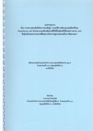 ผลงานวิชาการ เรื่อง การตรวจสอบสิทธิบัตรการประดิษฐ์ "กรรมวิธีการคัดกรองเซลล์ (whole cell) ที่อยู่ในลักษณะสารละลายที่ติดฉลากกับสารฟลูออเรสเรนต์ในการติดตามผล"