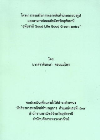 | PB003125 | ผลงานวิชาการ เรื่อง โครงการส่งเสริมการตลาดสินค้าเกษตรแปรรูปและอาหารปลอดภัยจังหวัดอุทัยธานี "อุทัยธานี Good Life Green 2020" | อยู่บนชั้นวางหนังสือ | เข้าสู่ระบบ |