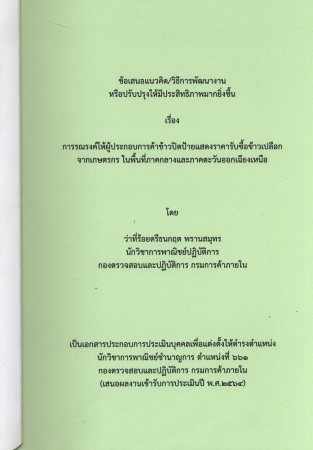 ผลงานวิชาการ เรื่อง การรณรงค์ให้ผู้ประกอบการค้าข้าวปิดป้ายแสดงราคารับซื้อข้าวเปลือกจากเกษตรกร ในพื้นที่ภาคกลางและภาคตะวันออกเฉียงเหนือ