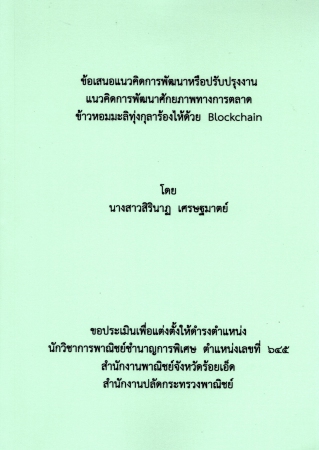 | PB003678 | ผลงานวิชาการ เรื่อง แนวคิดการพัฒนาศักยภาพทางการตลาดข้าวหอมมะลิทุ่งกุลาร้องไห้ด้วย Blockchain | อยู่บนชั้นวางหนังสือ | เข้าสู่ระบบ |