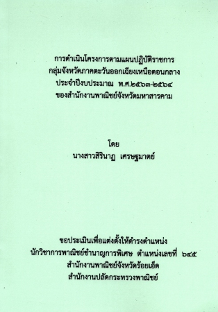 | PB003680 | ผลงานวิชาการ เรื่อง การดำเนินโครงการตามแผนปฏิบัติราชการกลุ่มจังหวัดภาคตะวันออกเฉียงเหนือตอนกลาง ประจำปีงบประมาณ พ.ศ.2563-2564 ของสำนักงานพาณิชย์จังหวัดมหาสารคาม | อยู่บนชั้นวางหนังสือ | เข้าสู่ระบบ |