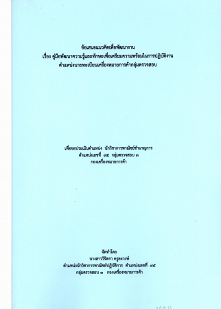 ผลงานวิชาการ เรื่อง คู่มือพัฒนาความรู้และทักษะเพื่อเตรียมความพร้อมในการปฏิบัติงาน ตำแหน่งนายทะเบียนเครื่องหมายการค้ากลุ่มตรวจสอบ