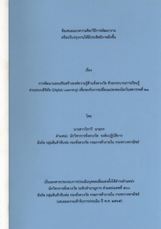ผลงานวิชาการ เรื่อง การพัฒนาและเสริมสร้างองค์ความรู้ด้านชั่งตวงวัด ด้วยกระบวนการเรียนรู้ผ่านระบบดิจิทัล (Digital Learning) เพื่อรองรับการเปลี่ยนแปลงของโลกในศตวรรษที่ 21