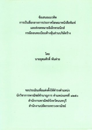 | PB004179 | ผลงานวิชาการ เรื่อง การเป็นสื่อกลางการประกาศโฆษณาหนังสือพิมพ์และส่งจดหมายอิเล็กทรอนิกส์ กรณีถอนทะเบียนห้างหุ้นส่วนบริษัทร้าง | อยู่บนชั้นวางหนังสือ | เข้าสู่ระบบ |