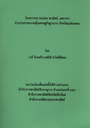 | PB004845 | ผลงานวิชาการ เรื่อง โครงการรถ Mobile พาณิชย์...ลดราคา! ช่วยประชาชนกระตุ้นเศรษฐกิจฐานราก จังหวัดแม่ฮ่องสอน | อยู่บนชั้นวางหนังสือ | เข้าสู่ระบบ |