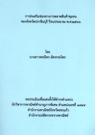 | PB005040 | ผลงานวิชาการ เรื่อง การส่งเสริมช่องทางการตลาดสินค้าชุมชนของจังหวัดปราจีนบุรี ปีงบประมาณ พ.ศ.2566 | อยู่บนชั้นวางหนังสือ | เข้าสู่ระบบ |