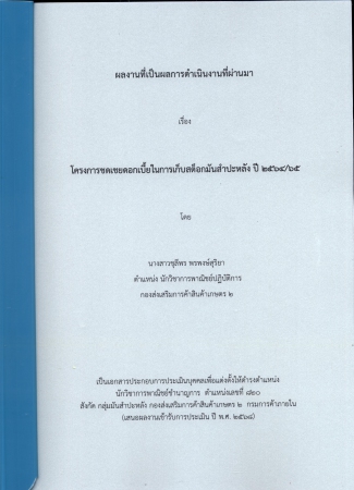 ผลงานวิชาการ เรื่อง โครงการชดเชยดอกเบี้ยในการเก็บสต็อกมันสำปะหลัง ปี 2564/65
