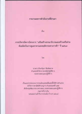 PB005317 ผลงานวิชาการ เรื่อง การบริหารจัดการโครงการ "เสริมสร้างธรรมาภิบาลและสร้างเครือข่ายพันธมิตรในการดูแลราคาและพฤติกรรมทางการค้า" ปี 2567 อยู่บนชั้นวางหนังสือ เข้าสู่ระบบ