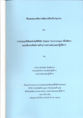 ผลงานวิชาการ เรื่อง การประยุกต์ใช้เทคโนโลยีดิจิทัล (Digital Technology) เพื่อพัฒนาและเพิ่มประสิทธิภาพด้านการตรวจสอบและปฏิบัติการ