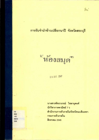ผลงานวิชาการ เรื่อง การรับจำนำข้าวเปลือกนาปี จังหวัดสระบุรี
