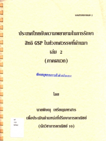 ประเทศไทยกับความพยายามในการรักษาสิทธิ GSP ในช่วงทศวรรษที่ผ่านมา เล่ม 2 (ภาคผนวก)
