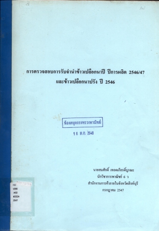 การตรวจสอบการรับจำนำข้าวเปลือกนาปี ปีการผลิต 2546/47 และข้าวเปลือกนาปรัง ปี 2546