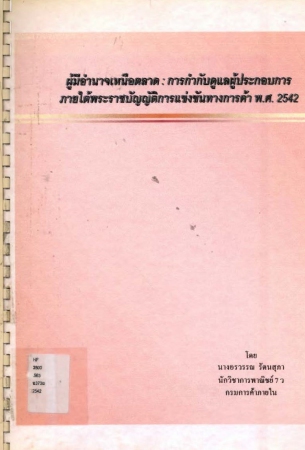 ผลงานวิชาการ เรื่อง ผู้มีอำนาจเหนือตลาด : การกำกับดูแลผู้ประกอบการภายใต้พระราชบัญญัติการแข่งขันทางการค้า พ.ศ.2542