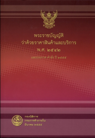 | 03759 | พระราชบัญญัติว่าด้วยราคาสินค้าและบริการ พ.ศ.2542 และประกาศ คำสั่ง ปี 2555 | อยู่บนชั้นวางหนังสือ | เข้าสู่ระบบ |